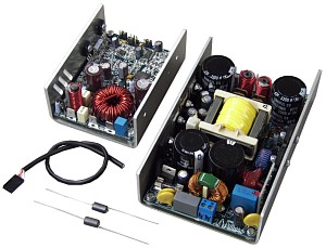 Das Modul von Coldamp ist ein reines Verstärkermodul. Es besitzt kein Netzteil. Coldamp bietet aber Module für Netzteile an. Diese sind als Schaltnetzteile ausgeführt. Eine Hilfsspannung wird mit ±12V geregelt zur Verfügung gestellt.