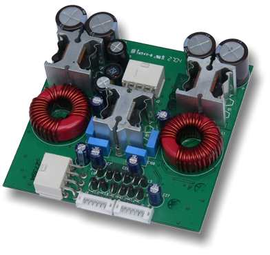 Das Modul von LCAudio ist ein reines Verstärkermodul. Es besitzt kein Netzteil. LCAudio bietet aber Module für Netzteile an. Diese sind aber in konventioneller Technik (Ringkerntransformator, Gleichrichter/Elko Kombi) ausgeführt.